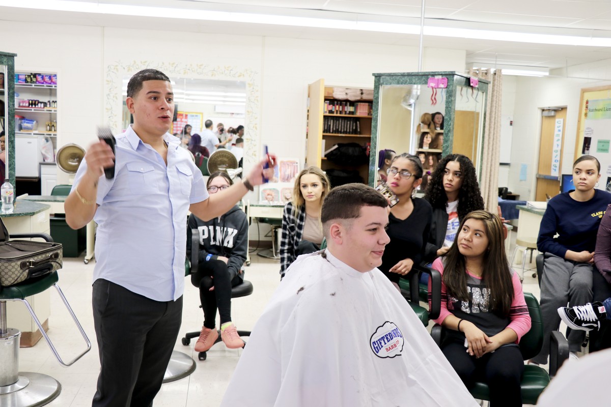 Jose Venacio was a special guest in the Cosmetology class this week. Mr. Venacio competes in barbering competition and has built his brand on hard work, detail in his craft, and networking. He owns a business called Gifted Hands in Warwick, has traveled the country competing and teaching barbering, and has cut hair for the Texas Rangers MLB team and Jay Z’s bodyguard.