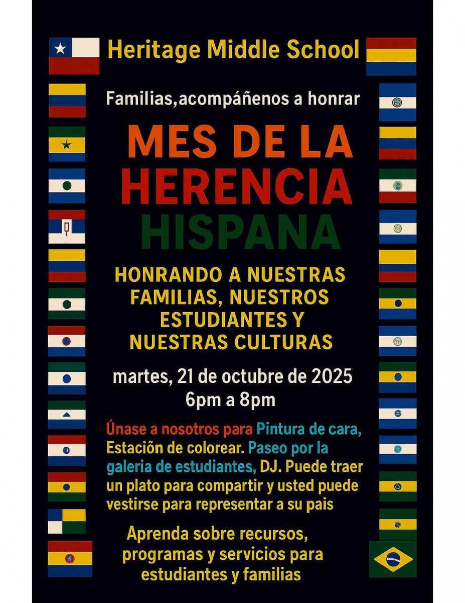 Acompáñenos para: Pintura facial, Estación de colorear, Paseo por la galería estudiantil, DJ, puede traer un plato para compartir y vestirse para representar a su país.