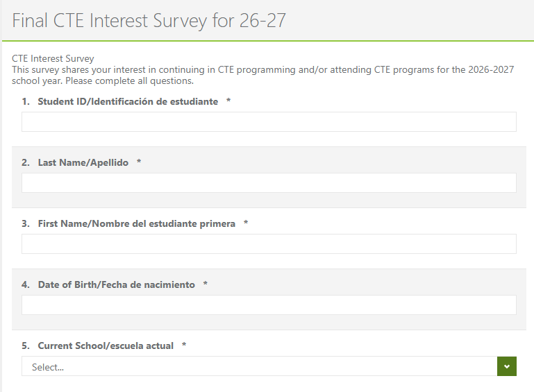 - Click on the link titled "Final CTE Interest Survey for 26-27"