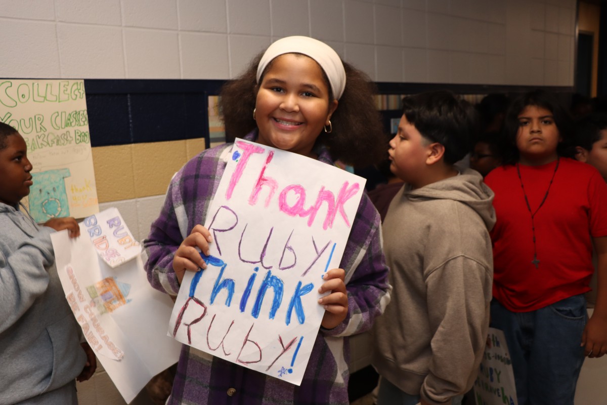 Our youngest scholars in Grades Pre-K through Grade 1 echoed the promise, “We’re not too small to stand tall!” Grades 2 and 3 crafted their own slogan and declared with pride, “We all belong. We’re Ruby strong!” Grades 4 and 5 raised their voices with conviction as they shared their own original and powerful declaration, “Be strong. Be brave. Be Ruby Bridges today!” On the day of the walk, our preschool visitors joined Grades 4 and 5 as they marched through hallways lined with cheering students who held their placards high and repeated their powerful slogans. The event culminated in the gym where our youngest friends gathered to watch and listen as Grades 4 and 5 sang We Shall Overcome, filling the space with hope, shared purpose, and a spirit of growing community.