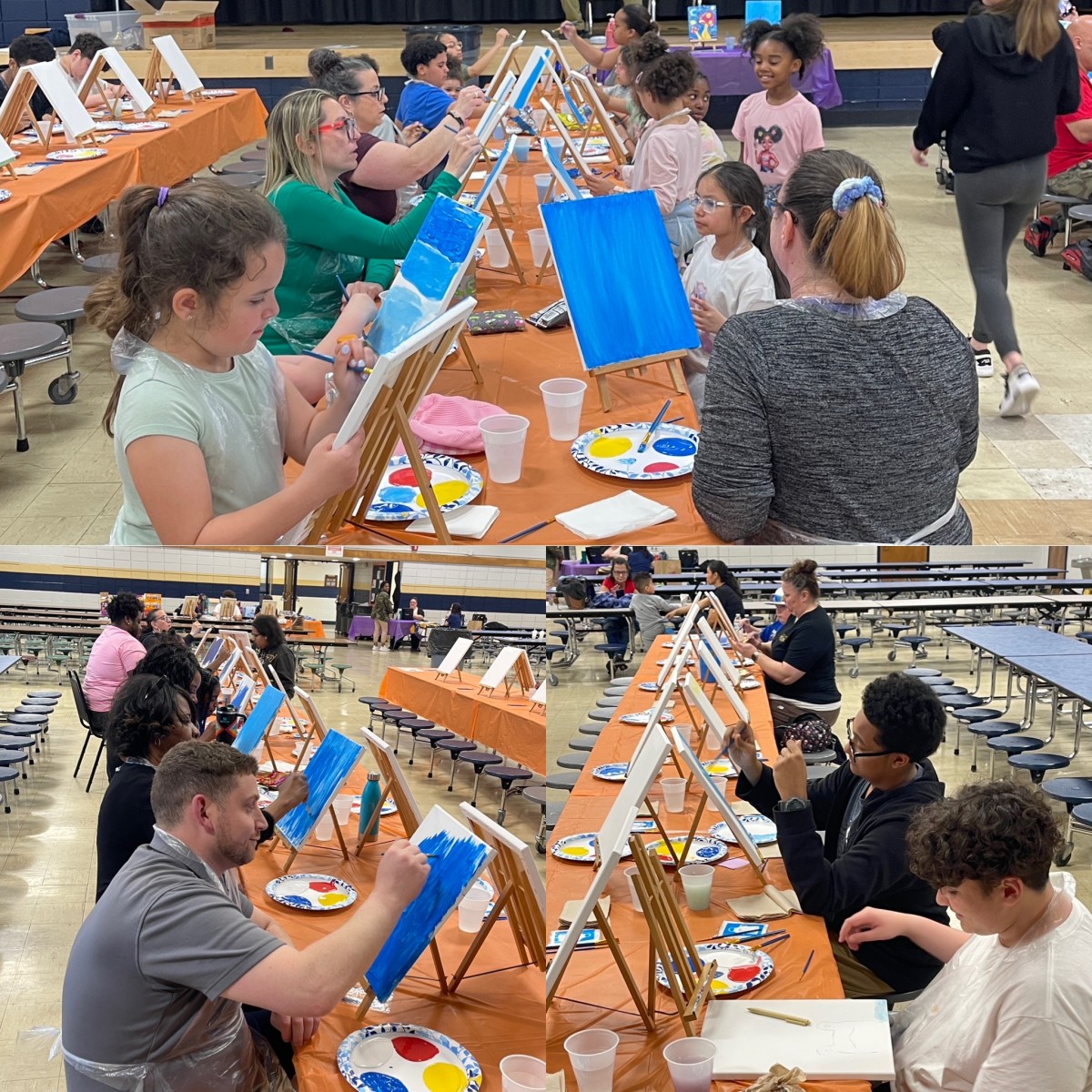 Temple Hill Academy’s PTO hosted a spring paint night! Ms. Dutcher (secondary art teacher), led families through a how to, Starry Night-inspired, spring painting! Together participants created their own unique masterpieces!