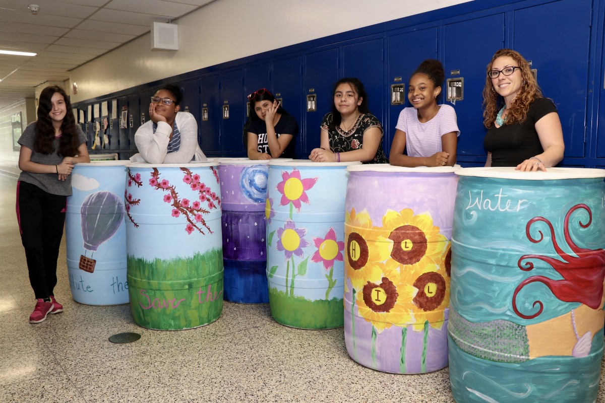 Under the guidance of Mrs. Rachel Williams, Art Teacher at Meadow Hill School, the students designed and painted the rain barrels using various aspects of nature as a theme. The students won a certificate of recognition, a goody bag, and free admission to an event or entertainment facility that is in partnership with Liberty Coca-Cola. These rain barrels will be donated to Bannerman's Island, schools in the district, and urban farms in the community.