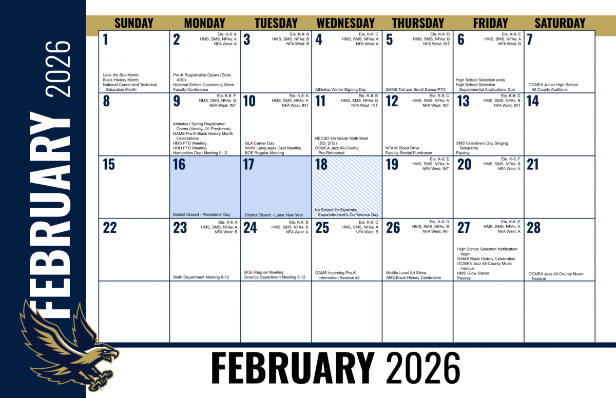 One printed wall calendar has been distributed to each family this fall in their backpacks. Families that would like to request an additional calendar should reach out to their child's school directly. Community members who would like to request a calendar should email Communications@necsd.net.