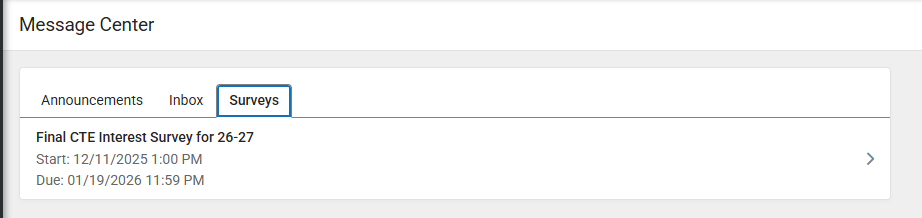 - Click on the link titled "Final CTE Interest Survey for 26-27"