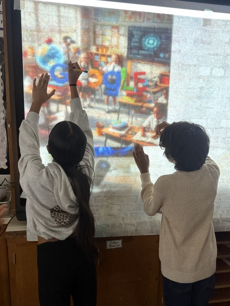 Temple Hill Academy’s Art Club with Miss Reyes designed and made a small mural for our Technology Specialist, Mr. Stevens. The title “Tech Magic” showcases different uses of technology in the classrooms through imagery in a collage-like fashion.