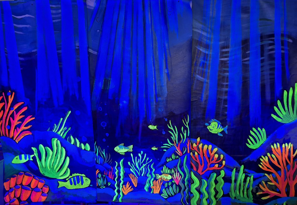 Our talented scholars in Ms. McCarthy’s Empire Arts and Crafts and Art classes have been working hard to bring the deep blue sea to life! They created these stunning backdrops for Ms. Clina’s upcoming production of The Little Mermaid, using acrylics and a special touch of glow-in-the-dark paint to make the scenery truly pop.