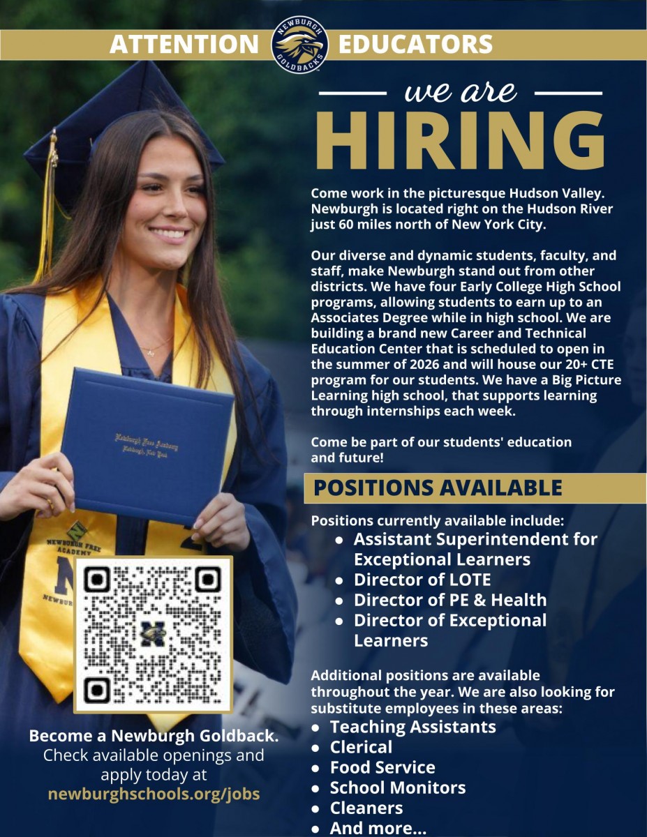 I am pleased to share that agreements have now been reached upon the terms for the Newburgh Teachers’ Association Collective Bargaining Agreements covering the period of July 1, 2025 through June 30, 2027 for teachers, teaching assistants, and substitute teachers. We are awaiting ratification by members of the Newburgh Teachers’ Association. Once that occurs, the Board of Education will vote on ratification resolutions for the three agreements.